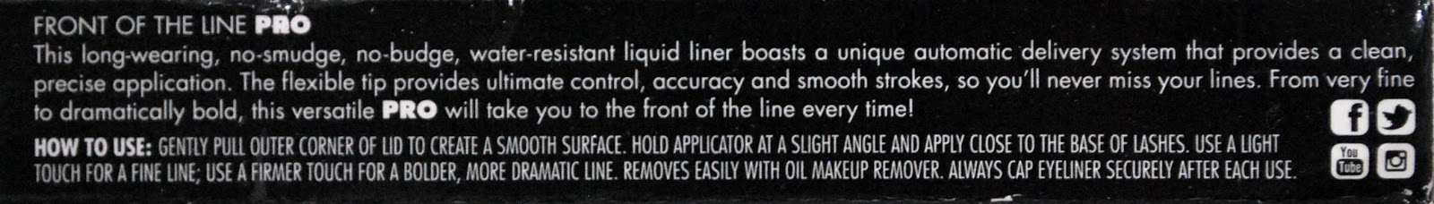 This long-wearing, no-smudge, no-budge, water-resistant liquid liner boasts a unique automatic delivery system that provides a clean, precise application. The flexible tip provides ultimate control, accuracy and smooth strokes, so you’ll never miss your lines. From very fine to dramatically bold, this versatile PRO will take you to the front of the line every time!